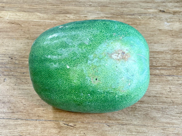 通常のとうがんよりの半分ほどの大きさで、冷蔵庫にまるごと入るので扱いやすいです。
