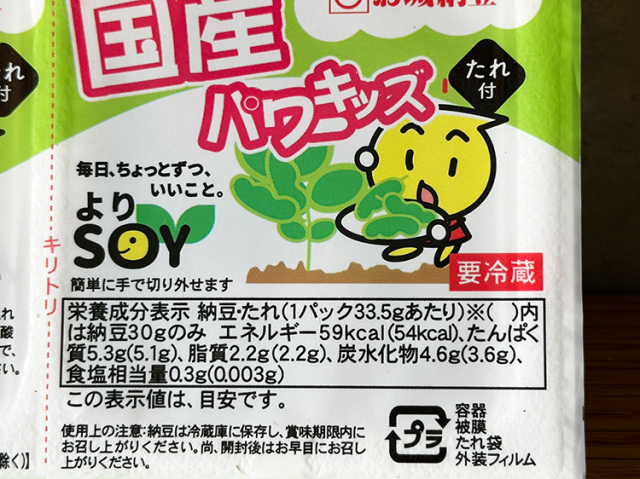 栄養成分表示 納豆・たれ(1パック33.5gあたり)
