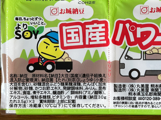 ※納豆の表面に白い斑点が現れることがありますが、アミノ酸(チロシン)の結晶ですので、安心してお召し上がりください。