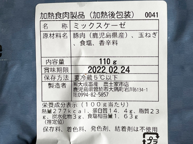 鹿児島やごろう豚のミックスケーゼ(50g×2枚入)【0.2kg】