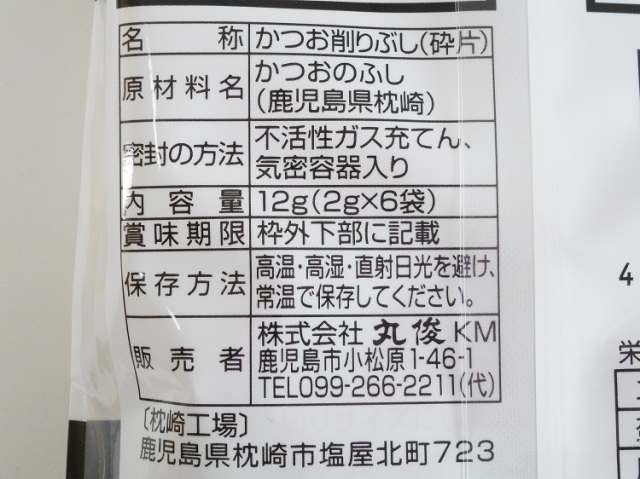 原材料名 かつおのふし(鹿児島県枕崎製造)