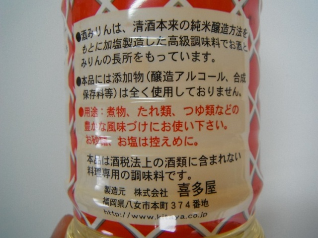 酒みりんは、清酒本来の純米醸造方法をもとに加塩製造した高級調味料でお酒とみりんの長所をもっています。