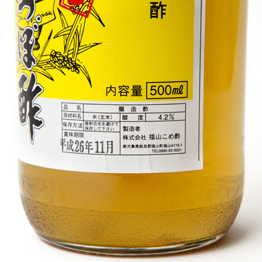 いつも梅酢づくりに欠かせない酢です。よけいな添加物が入っていないので自然な美味しい梅酢に仕上がります。